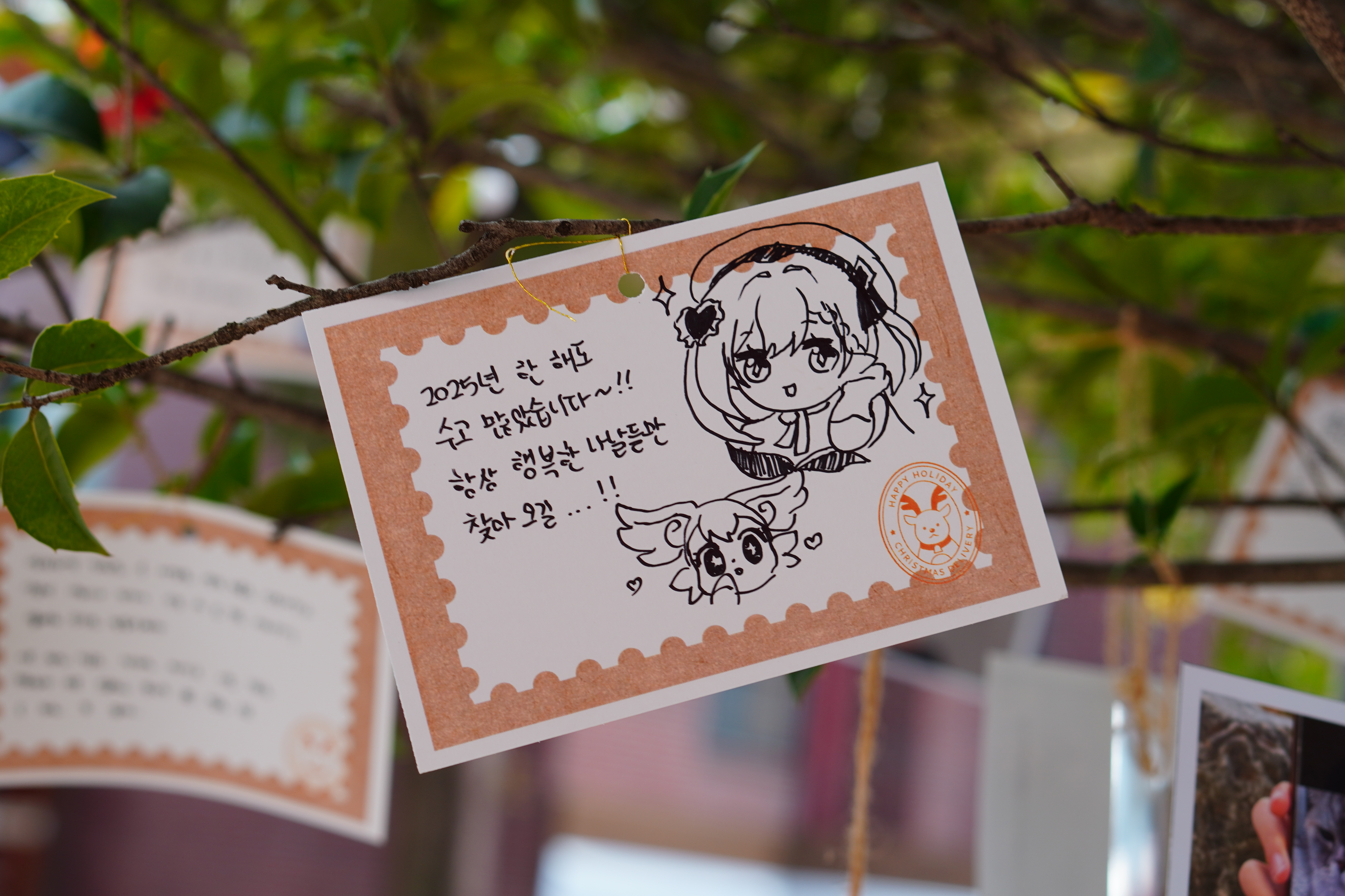 부스를 다 돌고 나오니 나무에 편지들과 사진이 걸려 있었습니다.